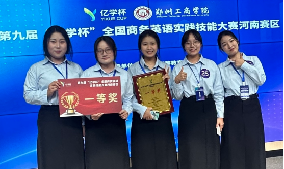 9月19日至20日,第九届全国商务英语实践技能大赛河南省赛(总决赛)在郑州成功举办。本次大赛吸引了全省高校的27支优秀队伍同场竞技。我校威廉williamhill选派的商务英语两支代表队在指导教师的辛勤指导下表现出色,分别荣获一等奖和二等奖,为学校赢得了荣誉。