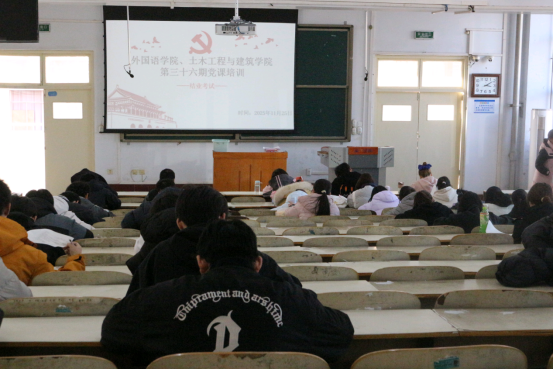 11月25日,第三十六期入党积极分子党课培训结业考试在A11-423教室举行。考试由芦琳老师统筹组织,50名参训学员严格遵守考场纪律,有序完成答题。此次考试全面检验学员理论学习成果,是一次深刻的初心使命淬炼与党性修养锤炼,标志着本次系统化、规范化的党课培训圆满落幕。