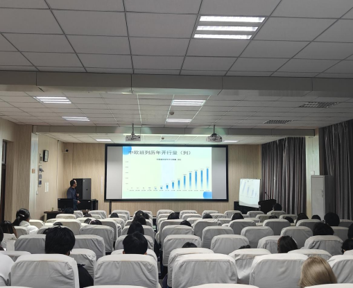 下午,冯海波以《从课堂到商场:俄语人才的职业路径与欧亚贸易数据解读》为切入点进行讲座。在欧亚合作关系解读环节,深入地剖析了中俄合作的深厚底蕴与广阔前景,从能源、经贸、人文等多个领域阐述了两国合作的务实成果与未来潜力;关于中欧班列开通数据,他更是通过详实的数据和案例,展示了中欧班列在推动欧亚贸易互联互通中的关键作用,使同学们清晰地看到了专业知识与跨境经贸实践的结合点。在就业方向分享板块,他详细介绍了多元的职业方向,如:跨境电商运营、外贸、教学、文化交流策划、翻译等工作。