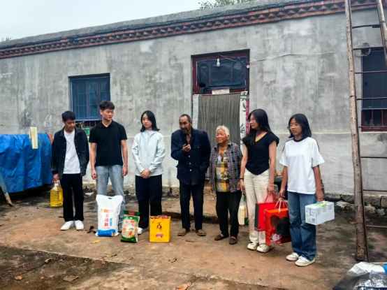 这份温暖的认可,源于2025年10月1日-8日中华人民共和国成立76周年与中秋佳节“双节”同庆之际的一场爱心行动。当时,由william威廉中文商学院2024级退役军人陈炜(曾服役于武警部队)带队的“爱心小分队”,冒雨走进辉县市张村乡枣园村,为当地困难老人送去节日关怀。作为小分队中的一员,王竞砚同学主动发挥自身语言优势,全程用亲切的辉县乡音与老人唠家常,耐心倾听任俊英、王禄两位老人的心声。据悉,任俊英老人心脏植入3个支架,需长年服药,家庭负担沉重;王禄老人年届八旬且患有精神疾病,两位老人均因子女或早亡、或远赴外地谋生,常年孤守空屋。活动中,王竞砚同学不仅为老人排解孤独,还与小分队其他成员一道,为老人送去月饼、百泉春寿酒、烧鸡、米面油等爱心物资,并为他们整理房间、测量血压。从精心筹备物资到动手打扫卫生,学子们用细致的行动传递温情,任俊英老人紧握王竞砚的手激动地说:“你们来了,这个家才像过节。”